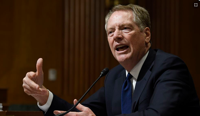 美国贸易代表莱特希泽在华盛顿国会山参议院财政委员会听证会上作证(2019年6月18日)。 彭博社周二援引消息人士称,美国贸易代表莱特希泽和团队将于下周一(7月29日)前往上海,与中国官... |