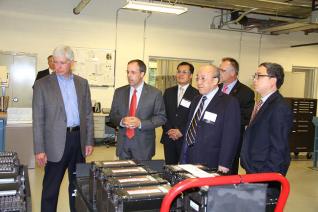 资料图片:美国密歇根州州长里克·斯奈德(左一)在位于美国密歇根州安阿伯市的A123系统公司车间参观工人组装电动汽车电池。2013年中国万向集团收购濒临破产的美国A123系统公司之后,不到两年时间,这家美国电池生... |