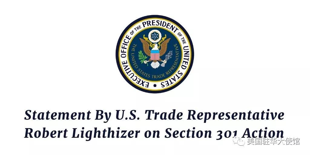 美国贸易代表罗伯特·莱特海泽关于301条款行动的声明 |