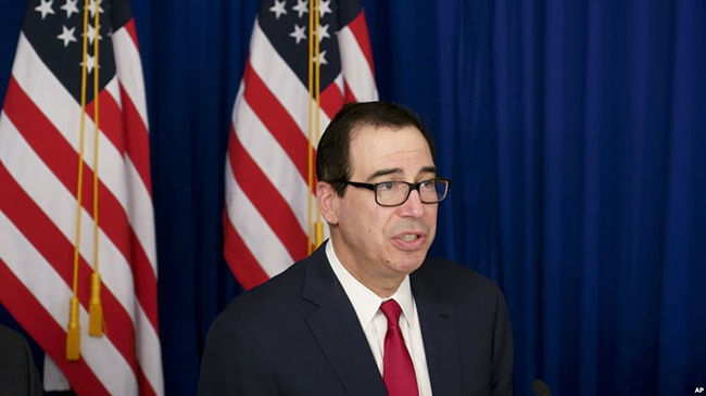 美国财长姆努钦在阿根廷首都布宜诺斯艾利斯举行的一个记者会上讲话。(2018年7月22日) 美国财政部长姆努钦说,到目前为止,他并未看到美国对钢铝和中国商品加征关税以及贸易伙伴的报复... |
