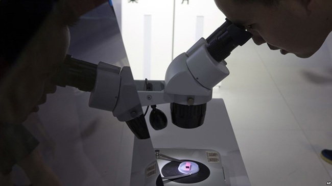 在北京第21届国际科技产业博览会上有人在通过显微镜看电脑晶片 来自美国高科技和化工产业等多个产业的代表星期四(5月17日) 在华盛顿的一个研讨会上指出,如果美中两国正在华盛顿举行的... |