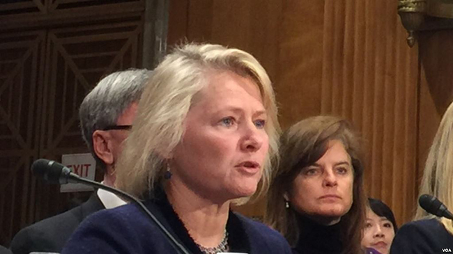 2018年2月15日,美国职业外交官代助理国务卿董云裳在美国国会参议院外交委员会提名听证会上。(美国之音记者扬之初拍摄) 美国国务院星期四公布了负责东亚太平洋事务的代理助理国务卿董... |