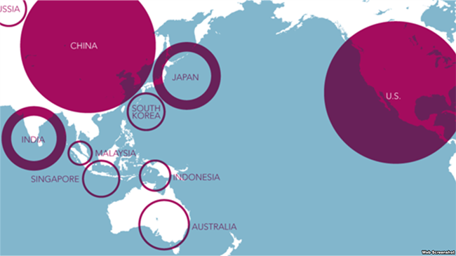 澳大利亚智库洛伊研究所(Lowy Institute)《亚太实力指数2018》报告的附图。 澳大利亚智库首次发表亚太实力指数,显示美国仍是亚太最强国,但中国正快速接近美国的实力。该智库说,美中... |