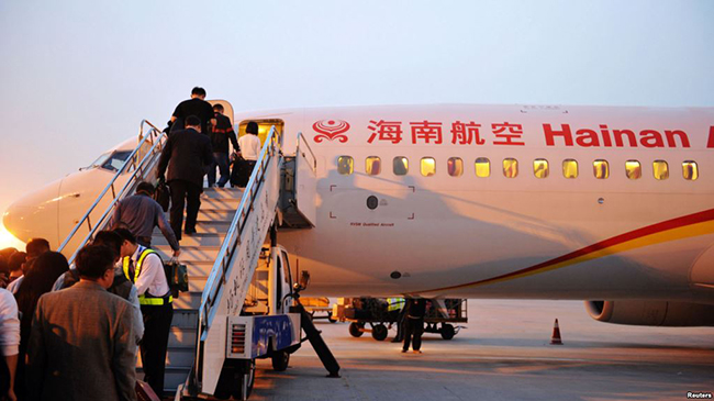 旅客登上海航客机(资料照) 中国海航集团与前白宫通讯联络主任斯卡拉穆奇(AnthonyScaramucci)掌握的对冲基金投资公司SkyBridge Capital周一发表声明称,双方决定放弃合并计划。此项合并计... |