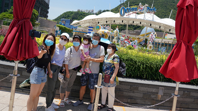 特朗普7月13日签署香港自治法案,允许他对涉及在香港强行实施国家安全法的中国官员和金融机构进行制裁与签证限制。特朗普14日签署涉港法案。图为香港市民在海洋公园门前合影。(图片来... |