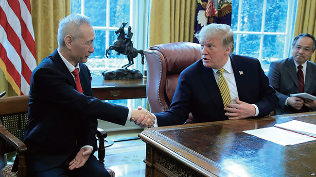 特朗普总统会见刘鹤副总理时表示 我们非常接近达成一份协议 |