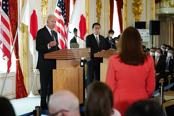 针对美国总统拜登在访日期间宣布启动“印太经济框架”(IPEF)一事,中国商务部24日回应称,相关倡议应保持开放包容而非歧视排他。拜登与岸田文雄23日在东京举行新闻发布会。(图片来源... |