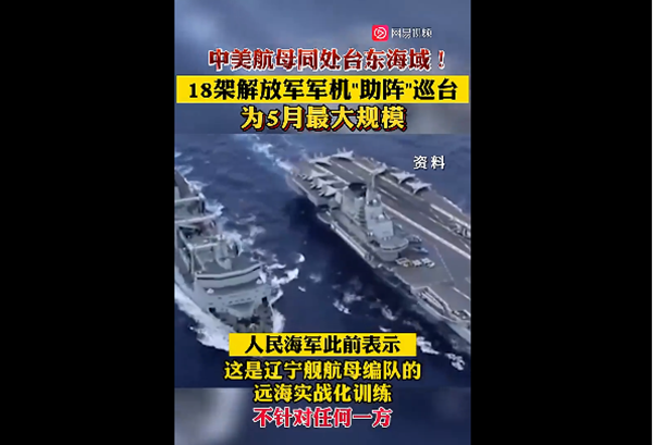 中美航母同处台东海域!18架解放军军机"助阵"巡台 为5月最大规模 |