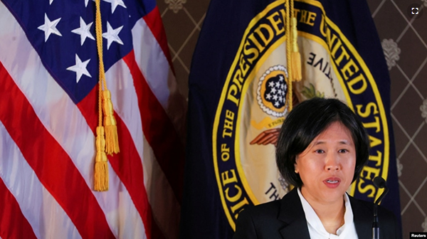 美国贸易代表戴琪(路透社资料照) 美国贸易代表戴琪星期一(2022年4月18日)与台湾行政院政务委员邓振中举行了线上会议。会后的官方声明没有说明双方是否讨论了台湾加入拜登政府印太经... |
