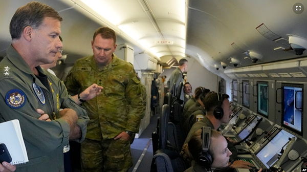 印太美军司令约翰∙阿奎利诺(左)海军上将在一架P-8A“波塞冬”侦察机查看南中国海局势最新发展。 (美联社2022年3月20日) 美国白宫表示,聚焦乌克兰局势并不分散拜登政府应对中国挑战的... |