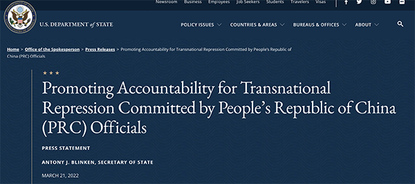 美国国务卿宣布:对这些中国官员实施签证制裁 |