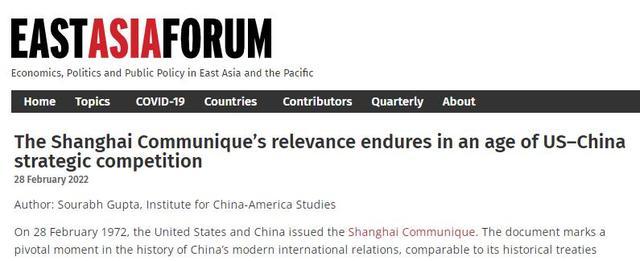 澳大利亚东亚论坛网站2月28日刊文称,中美关系目前正面临严峻挑战,“上海公报”对如何改善两国关系具有重要借鉴意义。澳大利亚东亚论坛网站截图 美国中美... |