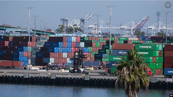 资料照:2021 年 10 月 20 日,在加利福尼亚州圣佩德罗的洛杉矶港,货物集装箱堆放在船上(美联社)。 白宫周四(2月24日)宣布了10项新措施,以加强美国的供应链,应对气候冲击和地缘... |