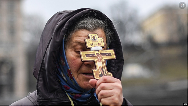 一位女士在基辅独立广场举着十字架在晨间祷告。(2022年2月24日) 在俄罗斯入侵乌克兰后,美国总统乔·拜登宣布了更多制裁,这些制裁措施“将对俄罗斯经济带来重大代价”。 ... |