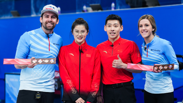 中国冰壶组合赛后送冰墩墩,美国选手回礼了 |