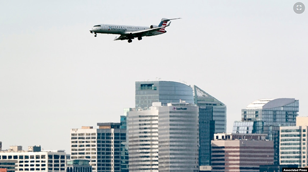 一架客机飞越首都华盛顿城外弗吉尼亚州罗斯林的高楼大厦,准备在附近的里根华盛顿国家机场着陆。(2022年1月19日) 美国联邦航空管理局(FAA)星期五(1月28日)宣布,总部在美国的两家电信公... |