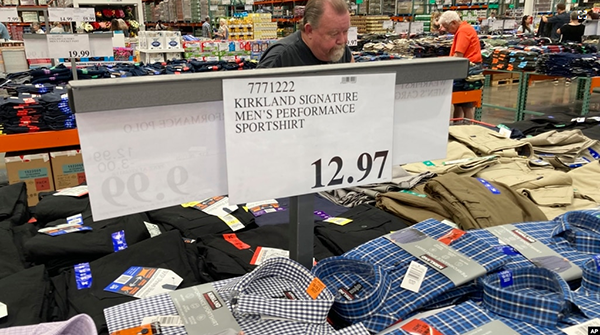 资料照片:科罗拉多州隆娜特利的一家开市客(Costco)仓储量贩店内一年前的衬衣价格。(2021年1月28日) 美国商务部星期五(1月28日)说,一个关键的通货膨胀指数——个人消费支出(PCE)指数比... |