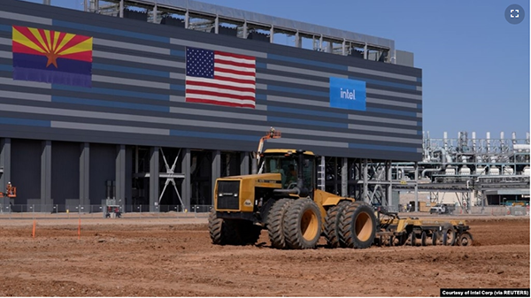 资料图:位于美国亚利桑那州钱德勒正在兴建中的英特尔芯片工厂 (2021年9月23日) 长期以来奉行自由市场原则的美国很少有“产业政策”之说,但现在,这是许多民主党人和共和党人达成较大... |