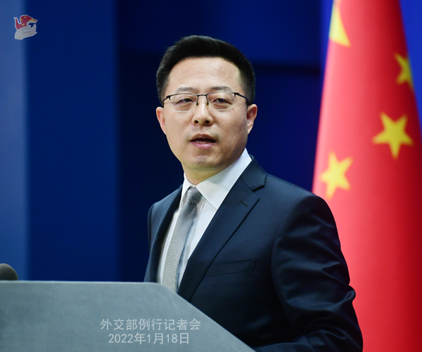 2022年1月18日外交部发言人赵立坚主持例行记者会。新华社记者:1月17日,习近平主席出席了2022年世界经济论坛视频会议并发表演讲。我们注意到,这是继2017年和2021年之后,习主席再次站上达沃斯世经论坛的讲台。请问... |