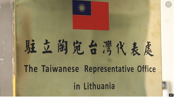 台北驻立陶宛台湾代表处的牌子。(2021年11月18日) 在东欧国家立陶宛因扩大与台湾的关系而遭到北京胁迫之际,一份美国智库根据美国、欧洲及台湾最近一场1.5轨对话所发布的报告说,欧洲... |