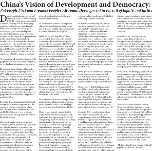 赵建总领事在领区英文媒体发表署名文章 《坚持以人民为中心的发 |
