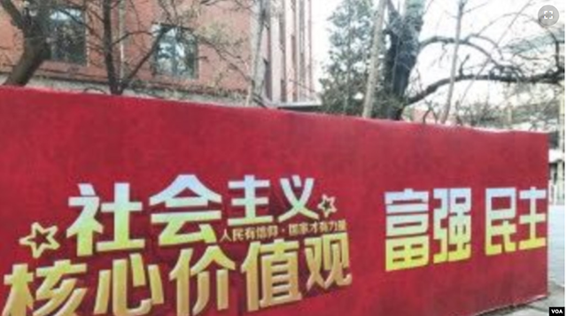 中国社会主义核心价值观的宣传口号在北京街头,倡导富强、民主、自由、公正、平等、法治、爱国等。(美国之音叶兵拍摄) 美国即将于下周12月9-10日邀集全球110国召开“民主峰会”,未受... |