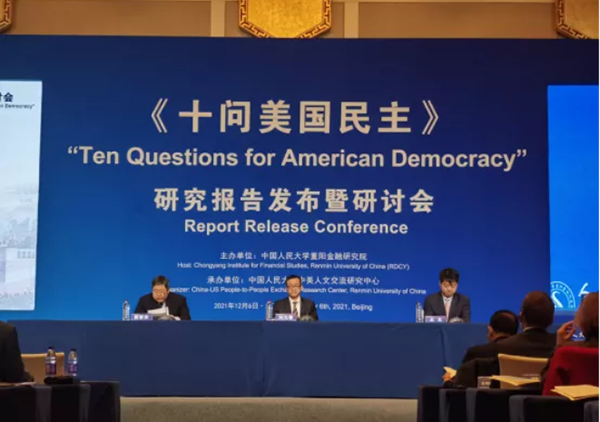 今天(12月6日),由中国人民大学重阳金融研究院主办的《十问美国民主》研究报告发布暨研讨会在京举行,来自包括美国在内的30多国驻华大使馆代表、近20家外国驻京媒体、40多家国内媒体记者现场与会。 《十问美... |