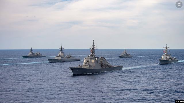 美国海军图片显示日本与澳大利亚、加拿大、德国和美国军舰在2021年度演习期间列队行进。(2021年11月21日) 在对中国和朝鲜的关注不断增加之际,美国正在接触更多的印太盟国,试图使该地... |
