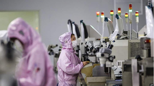 江苏省泗洪县一个芯片工厂的工人在生产线上。(2020年2月16日) 全球电子芯片供应从去年底开始出现严重短缺,令汽车、通讯、家电等多个制造业行业倍受打击,对各国经济复苏构成严重威胁... |