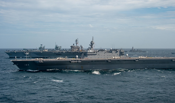 美国航母打击群与日本直升机航母在南中国海进行联合演习 |
