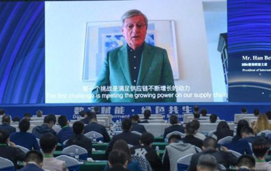 国际服装联盟(IAF)主席Han Bekke致辞。王刚摄 10月26日,以“数字赋能·绿色共生”为主题的2021第四届世界布商大会在浙江绍兴柯桥启幕。全球纺织界人士通过线上线下方式,共探纺织业的转... |