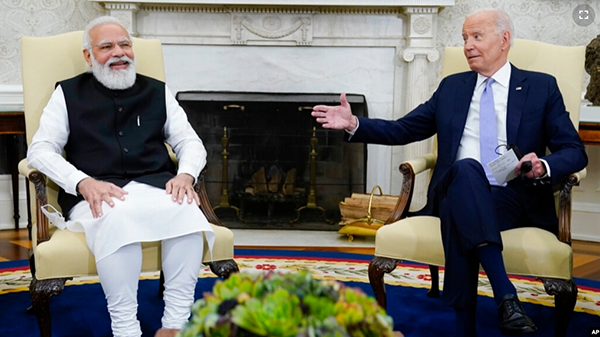 美国总统拜登在白宫会见印度总理莫迪 (资料照,2021年9月24日) 在印度分别与中国和美国的双边关系此消彼长之际,美国已经取代中国成为印度的最大贸易伙伴,而中国目前屈居第二。 ... |