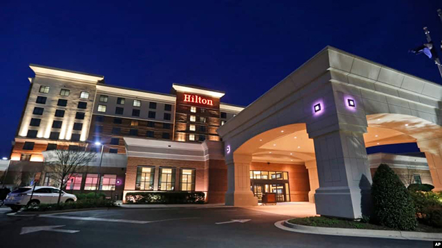 资料照片:美国弗吉尼亚州首府里士满的希尔顿酒店。(2016年3月30日) 美国最大的穆斯林民权组织联合40多个美国和国际组织呼吁在全球范围抵制希尔顿酒店,因为该组织说,希尔顿计划在中... |