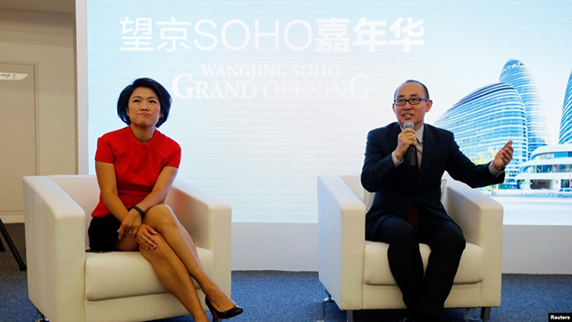 SOHO中国公司董事长潘石屹和首席执行官张欣在关于北京望京SOHO建筑群的记者会上(2014年9月20日)。 近日,美国投资公司黑石集团宣布放弃对房地产公司SOHO中国的收购,这是在中国官方监... |