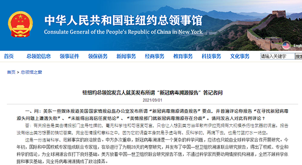 驻纽约总领馆发言人就美发布所谓“新冠病毒溯源报告”答记者问 |