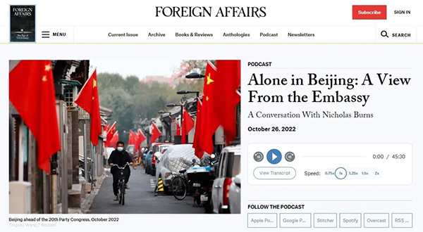 最近,伯恩斯大使与《外交事务采访》播客团队进行了深入交谈,分享了当下在北京代表美国的感受,以及他对美中关系的看法。本次45分钟的播客节目发布于2022年10月26日。以下是引用大使的... |