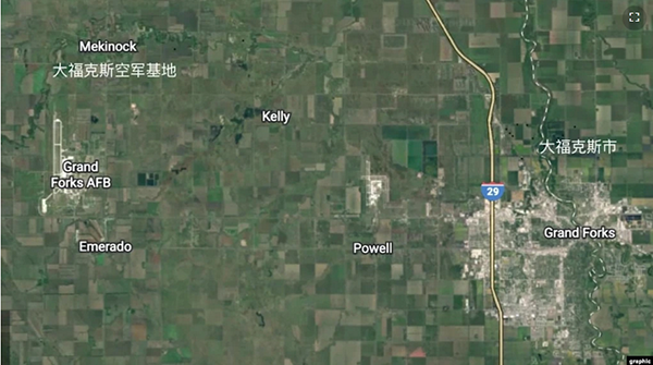 北达科他州大福克斯市北部,离大福克斯空军基地不到20英里处,中国阜丰集团美国子公司买的大片农地拟建中玉米湿磨加工厂。Credit: Google Earth在北达科他州大福克斯市北边,一座正在拟议中的价值7亿美元的玉米湿磨... |