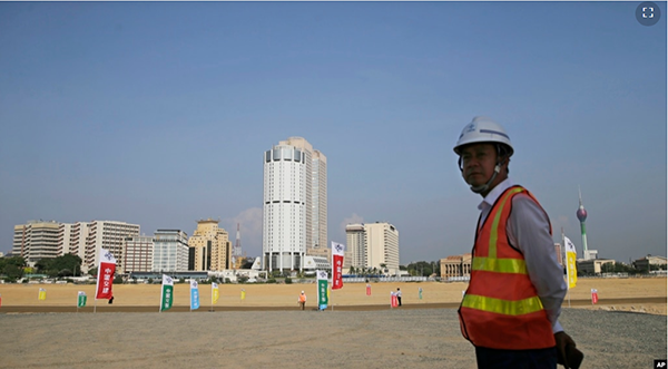资料图:一名中国建筑工人站在一带一路工程项目斯里兰卡科伦坡港口城工地上。(2018年1月2日) 美国国务院星期二(7月19日)发布的年度《人口贩运问题报告》说,强迫劳动是中国“一带一路”... |