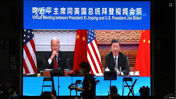 2021年11月16日,中国北京的一家餐馆内的电视屏幕显示中国国家主席习近平正通过视频与美国总统拜登举行虚拟会晤。(路透社照片) 关注美中关系的资深专家说,在即将到来的2022年里华盛... |