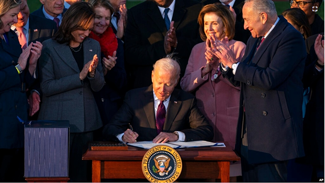 拜登总统在白宫外的南草坪签署《基础设施和就业法案》。(2021年11月15日) 美国总统乔·拜登星期一(11月15日)签署了投入1万亿美元以改善全美各地基础设施的法案,这项法案将修复老旧破损... |