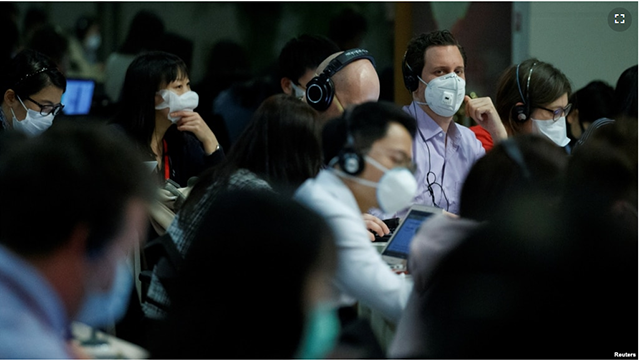 资料图:记者们在中国外交部举行的例行记者会上(2020年3月18日) 在美中元首视频会晤一天后,两国星期二(11月16日)宣布就记者签证问题达成一些共识。 美... |