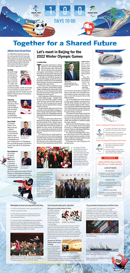 2021年10月27日,美国历史悠久的地方主流媒体《费城问询报》刊发“一起向未来”北京冬奥会倒计时100天特刊。 黄屏总领事为特刊撰写题为《相约中国北京,共襄冬奥盛会》的署名文章。... |