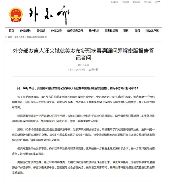 中国外交部回应美发布新冠病毒溯源报告 |