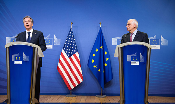 3月24日,正在布鲁塞尔访问的国务卿布林肯会晤欧盟外交与安全政策高级代表博雷利,双方宣布决定重启欧美涉华双边对话,将之作为全面讨论涉华挑战和机遇的论坛。(图片来源:中新社) 欧... |