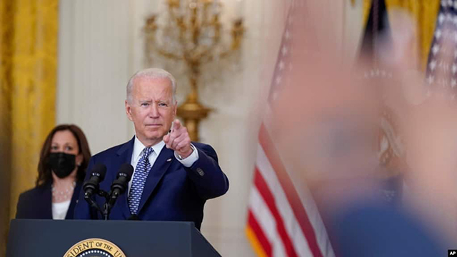 美国总统拜登在白宫就获得两党支持的基础设施法案发表讲话后,在回答媒体提问时做手势。副总统哈里斯在一旁聆听。(2021年8月10日) 刚刚赢得首次跨党派重大立法胜利的美国总统拜登正在... |