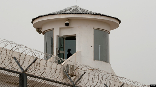 中国新疆喀什一名卫兵在拘留营的瞭望塔上站岗。(2021年5月3日) 美国国务院、财政部、商务部、国土安全部、贸易代表办公室和劳工部星期二(7月13日)联名发布一项新的商务警告,提醒美... |