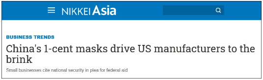 中国1美分口罩,让美国制造商无路可走 |