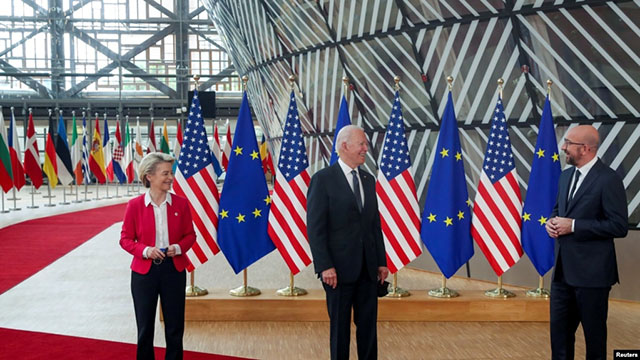 美国与欧盟领导人2021年6月15日在布鲁塞尔举行峰会(路透社) 拜登总统的欧洲行星期三(6月16日)还在继续。在欧洲,他先后参加了七国集团峰会、北约峰会以及美国和欧盟峰会。他成功说服... |