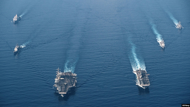 美国海军罗斯福号航母战斗群与马金岛号两栖戒备群2021年4月9日在南中国海进行编组巡航。(美国海军照片) 美国国防部长劳埃德·奥斯汀(Lloyd Austin)星期三(6月9日)推出一项整个国防部范... |