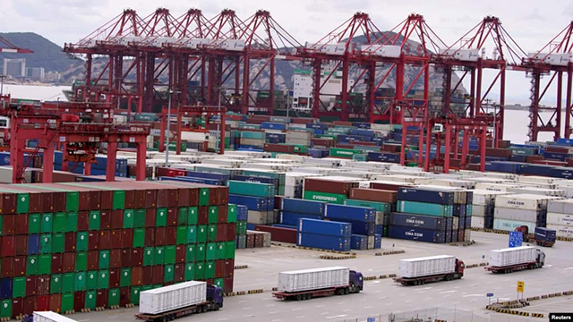 资料照:2020年10月19日,中国上海洋山深水港的集装箱和卡车(路透社)。 随着疫情在美国等重要市场的逐步减弱,强劲的国际需求导致中国5月份的进出口比去年大幅上涨,具有政治敏感性的... |